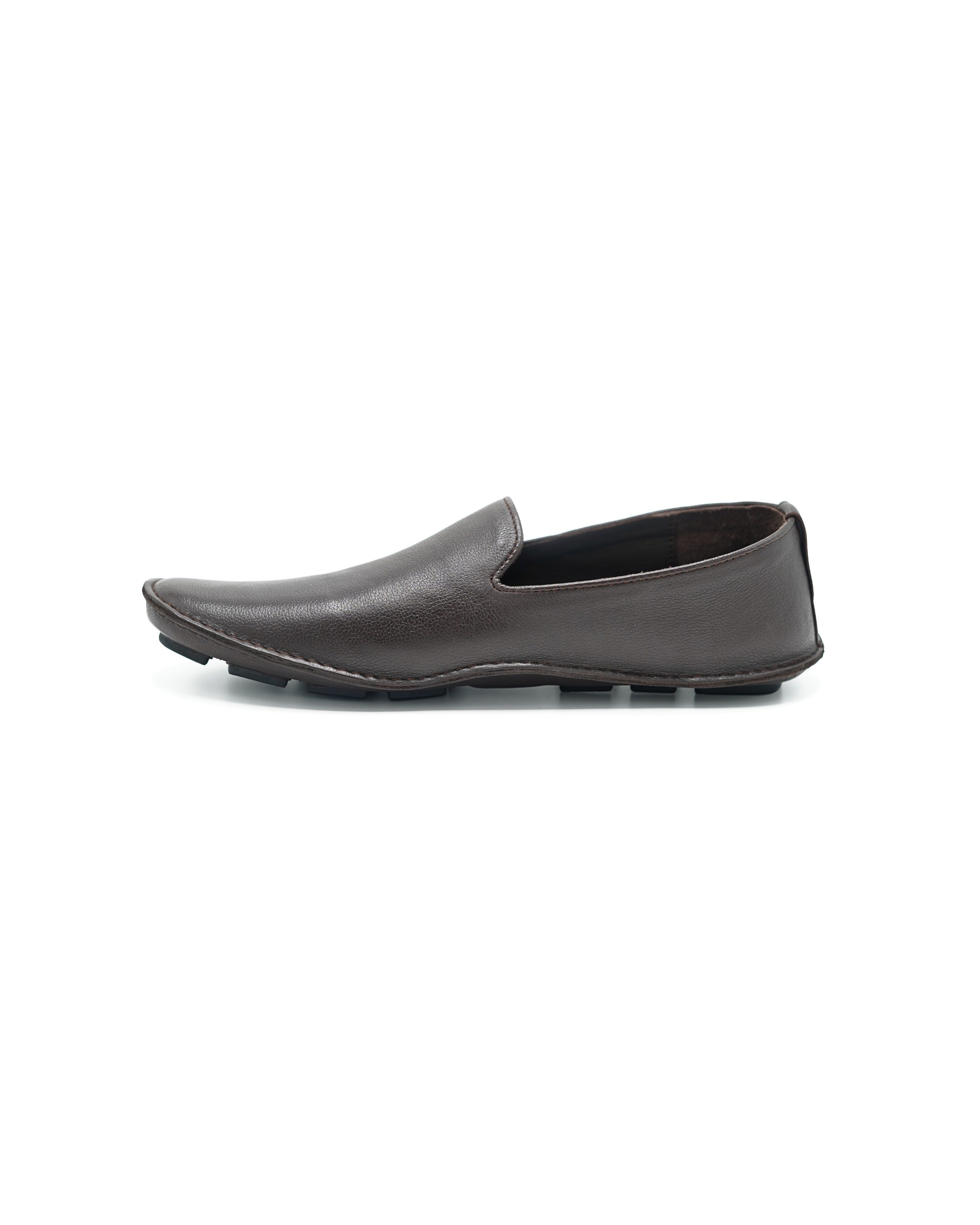Expertly crafted in Pakistan, the Knight - Muddy Brown is a timeless hand-made footwear piece. The one-piece vamp moccasin design, combined with hand-finished calf nubuck leather and a lightweight rubber sole, offers both durability and style. With cushioned insoles and leather lining, this shoe provides comfort and elegance.